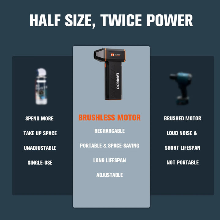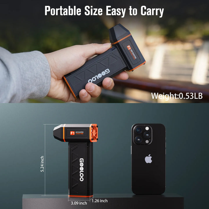 Elevate your cleaning game with the GOOLOO Compressed Air Duster. Boasting a powerful 160,000 RPM motor and adjustable 4-gear settings, this cordless air blower delivers a maximum wind speed of 45 m/s, effectively clearing dust and debris from your PC, keyboards, electronics, and even outdoor areas. Featuring a compact and lightweight design, the GOOLOO air duster comes with multiple nozzle attachments for customized cleaning. Enjoy the convenience of 3-hour fast charging...
